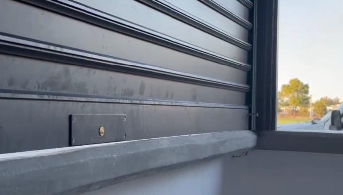 Resultado: la cortina mantuvo su estructura intacta. Aunque presentó abolladuras superficiales, no cedió en sus uniones, refuerzos ni guías laterales. La cerradura permaneció firme y la apertura no fue posible por fuerza bruta.
